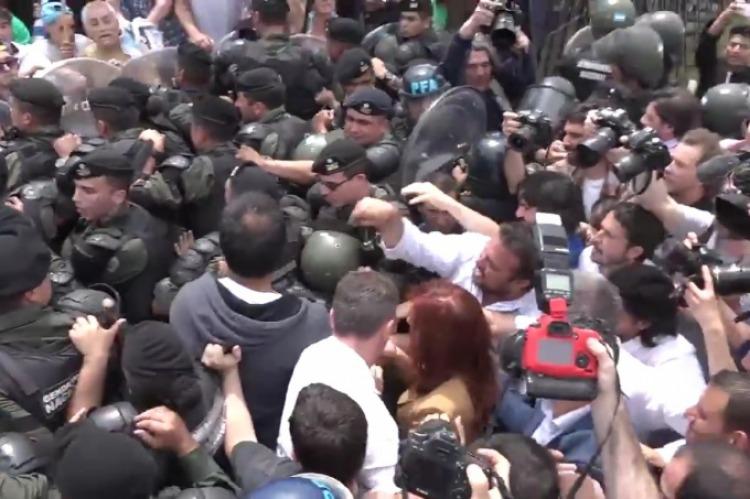 Durante la indagatoria de Cristina Fernández de Kirchner en Comodoro Py cientos de militantes se acercaron a las afueras de los tribunales para respaldarla, y sufrieron agresiones por parte de las fuerzas de seguridad. En ese contexto, la ex mandataria bajó de su auto y se enfrentó a los efectivos. Mirá las imágenes.