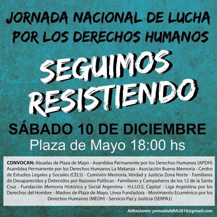 “Esperamos que el diez de diciembre estemos muy acompañados, porque la consigna es luchar. Nuestra consigna es no abandonar la resistencia, pero una resistencia en paz”, dijo la presidenta de Abuelas en relación a la iniciativa del próximo sábado, en el marco del Día de los Derechos Humanos y en el primer aniversario del gobierno de Mauricio Macri. "La plaza va a estar llena de compañeros, de sindicatos, organismos para seguir resistiendo", agregó Lita Boitano, de Familiares.