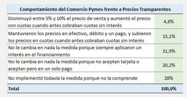 “La mayoría de los comercios pequeños y medianos que daban la posibilidad de financiamiento, ya cobraban un interés por el precio financiado porque las tarjetas no les daban las mismas condiciones que a las grandes cadenas. Eso les generaba pérdidas de ventas en las manos de los grandes comercios que sí ofrecían cuotas”, detalla el comunicado y agrega que además, una proporción importante de Pymes "solo aceptaban tarjetas en un pago, o no aceptaban".