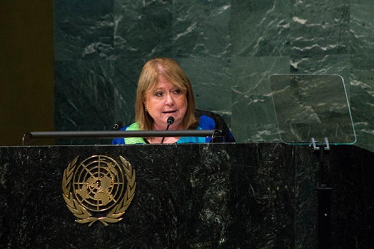 también la Cancillería detalló que entre los días 28 y 29 de septiembre la ministra realizó escala de un día y medio en Nueva York (luego de un viaje a Cartagena para presenciar la firma del acuerdo de Paz entre el Gobierno de Colombia y las FARC) para reunirse con representantes de países de miembros permanentes de la ONU.