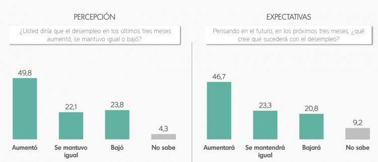 El 49.8% de los encuestados sostiene que creció el nivel de desempleo, mientras que para el 23.8% hay más personas que consiguieron un empleo.