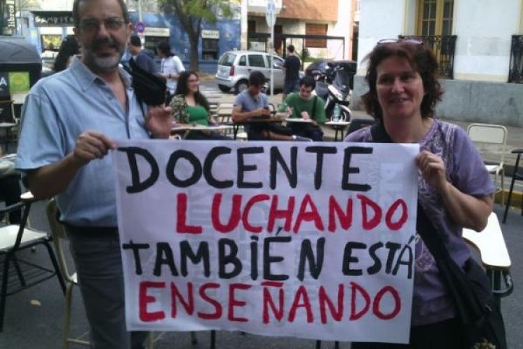 "no hay interés del Gobierno en mejorar los salarios docentes, en que volvamos a las escuelas y en solucionar este conflicto. No somos los dirigentes los que tomamos las medidas: son nuestras bases, aquí hablan los docentes", aseguró.