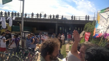 “Nos dicen que no hay plata pero la plata está ahí arriba, para las fuerzas de seguridad y para defender sus intereses”, cuestionó Macauda ante el despliegue de gendarmes, pese a que la olla y la asamblea, de la que participaba también Suteba Escobar, no cortaban la calle sino que se mantenían sobre un margen de la colectora.