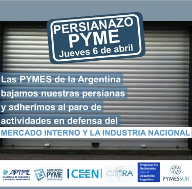el sector de las pequeñas y medianas empresas realizará un “persianazo” el próximo jueves. Según datos oficiales, ya cerraron definitivamente 6800 pymes en todo el país, y se estima un número similar en el sector informal.