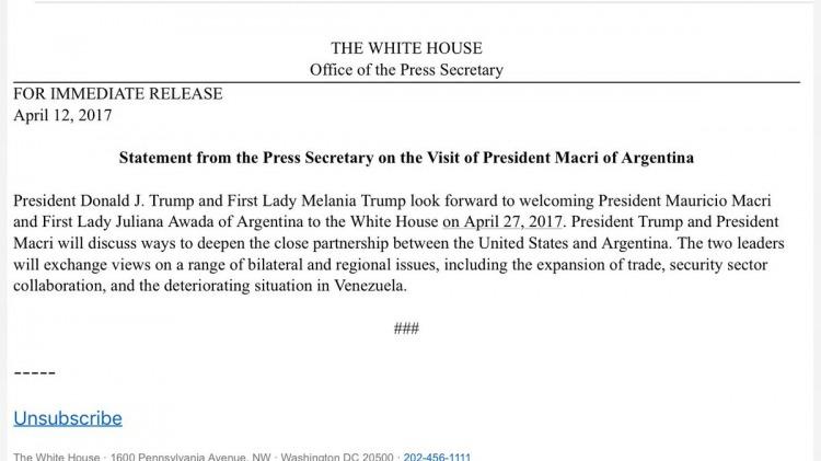 Ya es oficial: el presidente Mauricio Macri tiene cita con su par estadounidense, Donald Trump. El encuentro será el próximo 27 de abril en Washington, en el marco de la visita que el mandatario argentino realizará al país del norte.