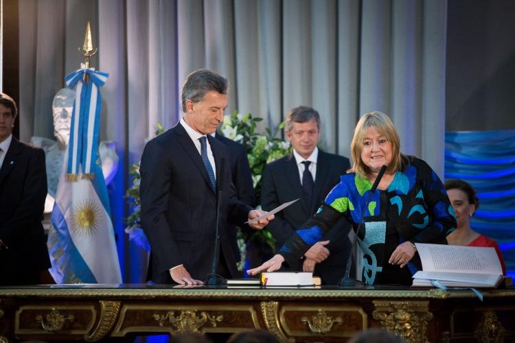 Con la firma del presidente Mauricio Macri y de Malcorra,
