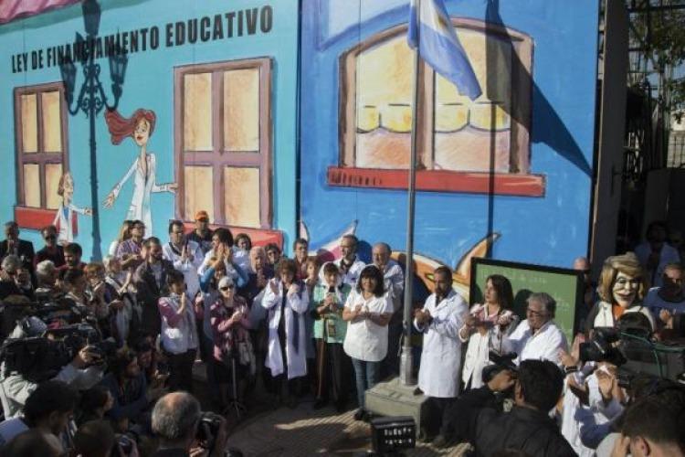 Este miércoles quedó inaugurada la escuela itinerante de Ctera, ubicada frente al Congreso de la Nación. Los docentes habían intentado instalar la estructura el domingo, cuando fueron reprimidos por la Policía. Luego, el Gobierno de la ciudad de Buenos Aires habilitó el permiso y permitió el armado de este aula hasta el próximo 19 de abril.