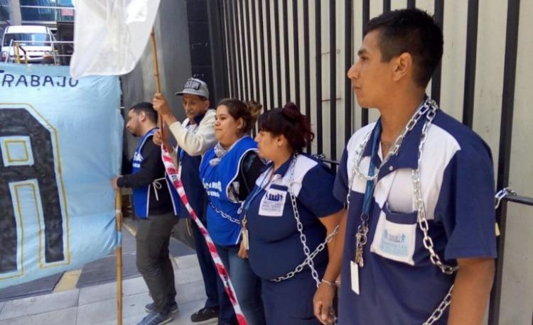 Empleados del sector de maestranza del Ministerio de Trabajo de la Nación, que pertenecen a una empresa tercerizada, se encadenaron a las puertas del Ministerio de Trabajo de la Nación en reclamo por salarios adeudados y continuidad laboral. En marzo, el ministro Jorge Triaca había contratado carneros para romper una huelga.
