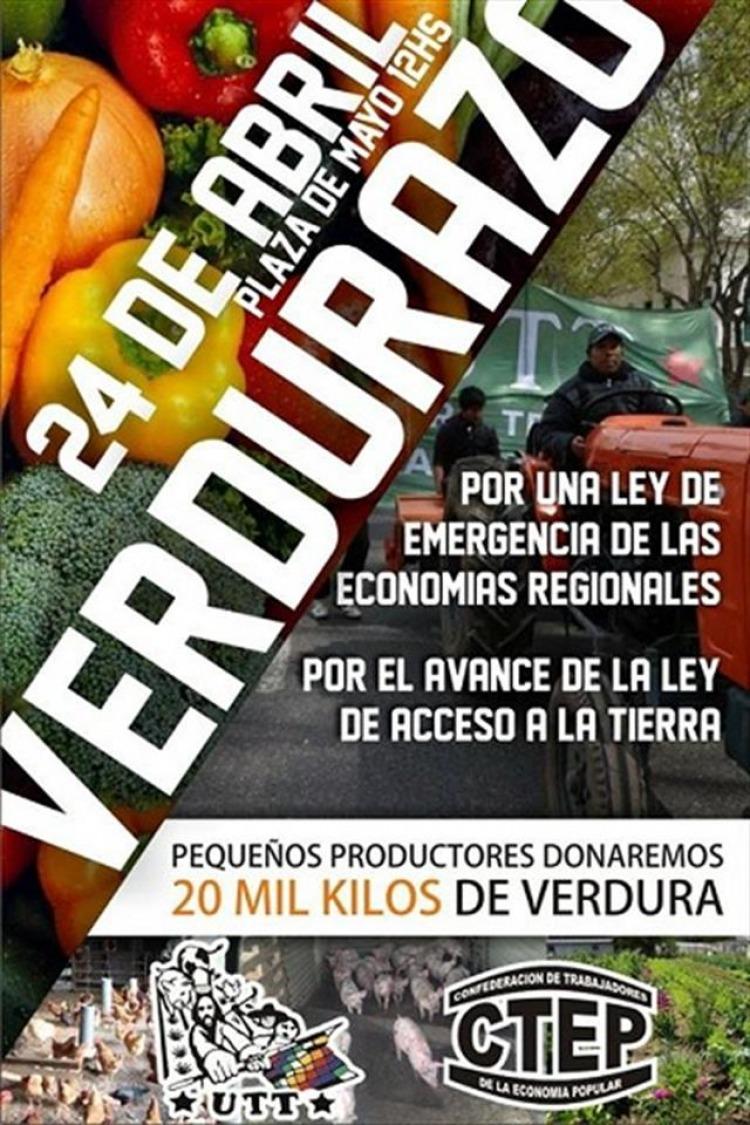 La Unión de Trabajadores de la Tierra realizó un "verdurazo" en Plaza de Mayo y entregó 20 mil kilos de verduras a quienes se acercaron, en reclamo de una “una Ley de Emergencia que brinde protección al trabajo y apoyo para el fortalecimiento de la producción y la comercialización de los pequeños productores”, según el comunicado oficial.