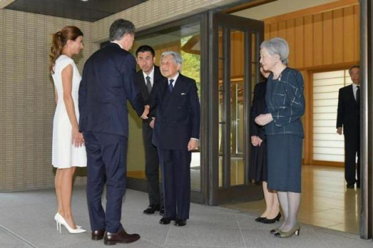 Mauricio Macri, acompañado por su esposa Juliana Awada, cerró su gira asiática con un encuentro con el emperador Akihito y su esposa Michiko en el Palacio Imperial de Tokio, un lugar al que acceden pocas personas, lo que se interpretó como un gesto de acercamiento entre ambos países.