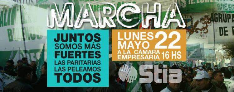 El Sindicato de Trabajadores de la Industria Alimentaria (STIA) marchará mañana a las 16 hacia la cámara empresaria del sector, en rechazo del aumento del 17 por ciento en tres cuotas que les ofrecieron desde el Gobierno, después de que el Ministerio de Trabajo dictara la conciliación obligatoria durante las paritarias.