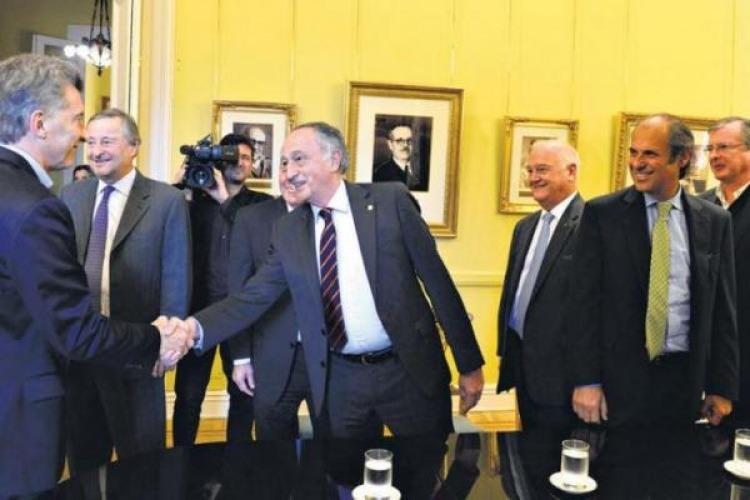 Ayer, Macri recibió durante casi una hora a la nueva conducción de la UIA en el Salón de los Científicos de la Casa Rosada, en una reunión de la que participó Mario Quintana, actual secretario de Coordinación Interministerial de la Jefatura de Gabinete, quién dirigió hasta su asunción el Grupo Pegasus, que tiene Farmacity, Freddo y Tortugas Open Mall, entre otros; Gustavo Lopetegui, secretario de Coordinación de Políticas Públicas, quién fue CEO de la aerolínea chilena Lan desde 2009; Luis Caputo, ministro de Finanzas, quién trabajó en JP Morgan entre 1994 y 1997 y en Deutsche Bank, donde estuvo hasta abril de 2008 y el ministro de Hacienda, Nicolás Dujvone.