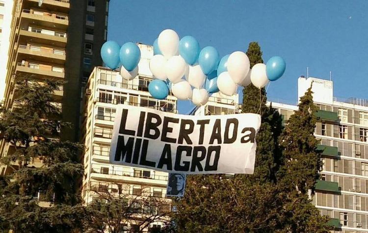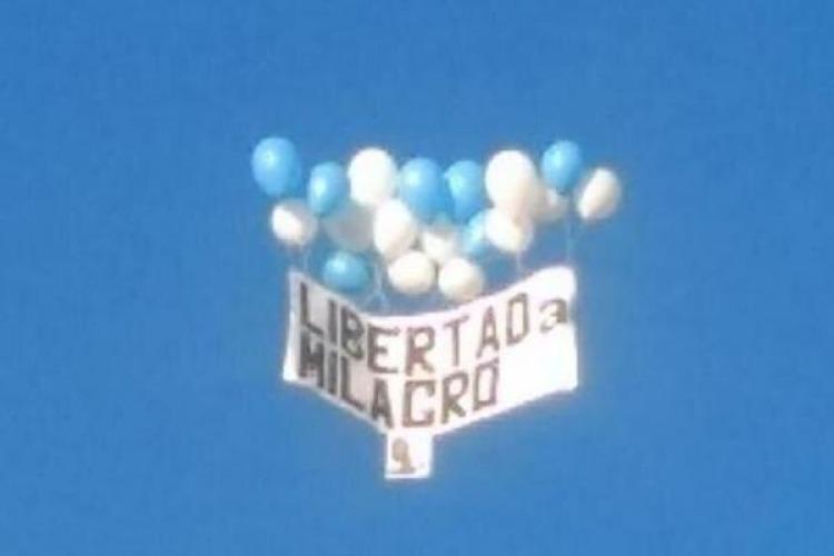 El Comité por la Libertad de Milagro Sala de Rosario organizó una suelta de globos del que colgaba un cartel que exigía la lberación de la líder de la Tupac Amaru. De esa forma se logró esqivar el fuerte operativo de seguridad que se montó para evitar las protestas contra el Presidente Mauricio Macri.