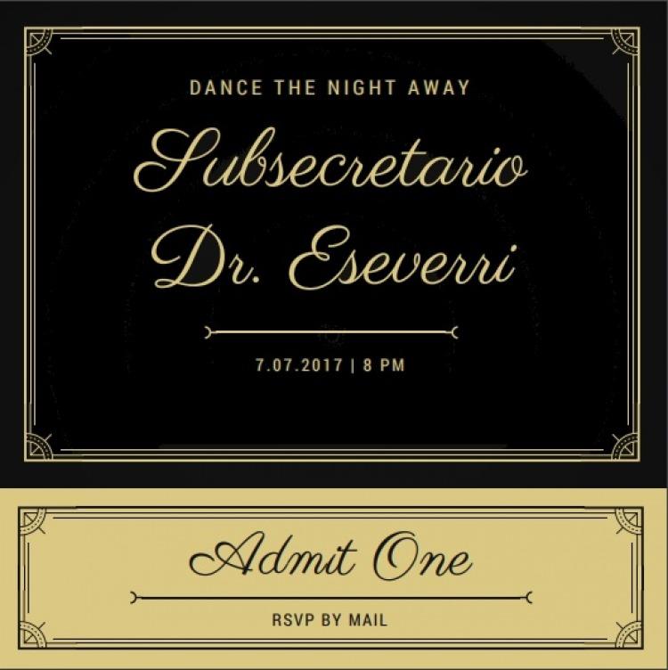 Bajo el mensaje "dance the night away", Eseverri convoca a su entorno para celebrar su ascenso que se puede ver reflejado en el organigrama del Estado que presenta el Ministerio de Modernización, y firma la invitación con un claro "Subsecretario Dr. Eseverri" para convocar al evento que tendrá lugar este viernes por la noche. La primera decisión del funcionario de Cambiemos en el Gobierno nacional no fue planificar una política socio laboral, sino invitar a todos a una fiesta mediante el mail institucional.