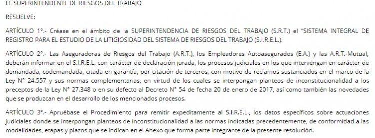“Sistema Integral de Registro para el Estudio de la Litigiosidad del Sistema de Riesgos del Trabajo (S.I.R.E.L.)", comienza el decreto PRO.