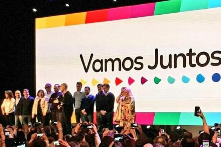 En medio de un clima festivo, pocos minutos después de conocerse los primeros resultados parciales oficales de las PASO, Horacio Rodríguez Larreta y Elisa Carrió salieron al escenario montado en el búnker de Costa Salguero junto a los precandidatos de Vamos Juntos.