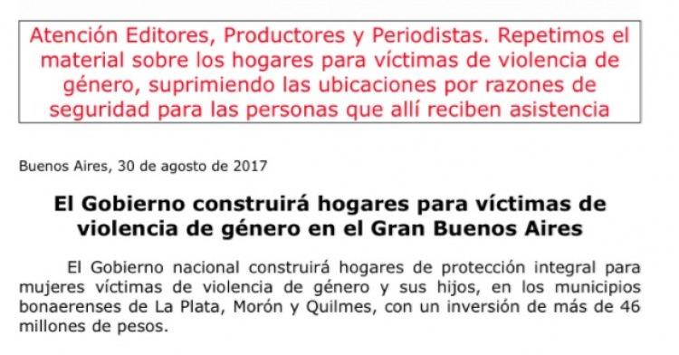 Ocurrió en un comunicado oficial de Presidencia de la Nación, que rezaba que la construcción se realizará "en los municipios bonaerenses de La Plata, Morón y Quilmes, con un inversión de más de 46 millones de pesos". Junto con el dato de las inversiones que hará el Gobierno en cada localidad le siguió la dirección de cada uno de los hogares.