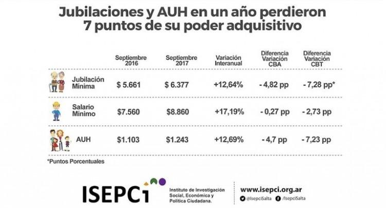 Las jubilaciones mínimas y la Asignación Universal por Hijo sufrieron una brusca caída en el poder adquisitivo durante el 2017 según un relevamiento realizado por el Instituto de Investigación Social, Económica y Política Ciudadana (ISEPCi).