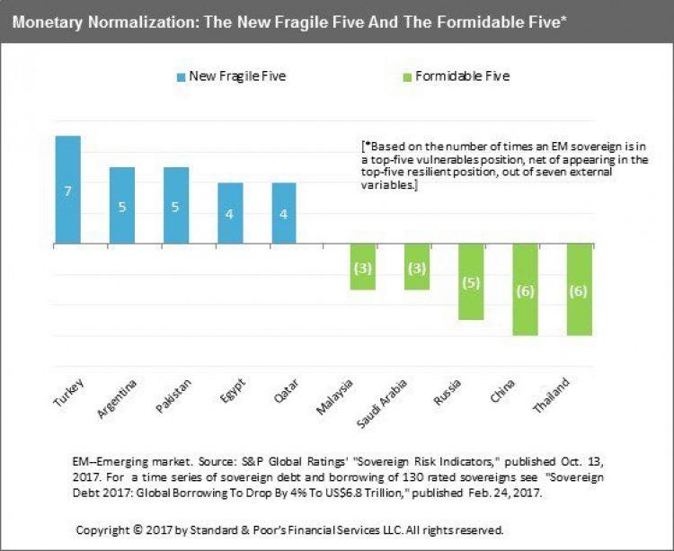 En 2015, los cinco frágiles eran Brasil, India, Indonesia, Sudáfrica y Turquía, es decir, Argentina no figuraba allí. Turquía fue la única nación soberana que estuvo "siempre entre las más vulnerables", independientemente de la variable elegida, según el informe.