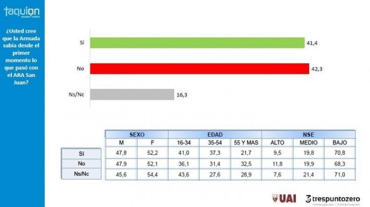 más de un 41% cree que la Armada "sabía desde el primer momento lo que pasó con el submarino".