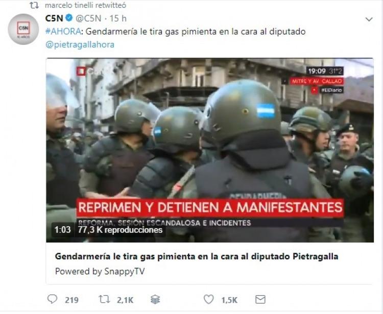 La cantante y actriz condenó la violencia en el Congreso y en la calle y tuvo que responder a cuentas de Twitter que la cruzaron. El reconocido presentador de TV, por su parte, criticó fuerte a las fuerzas de seguridad de la ministra Bullrich. Mirá qué dijeron.