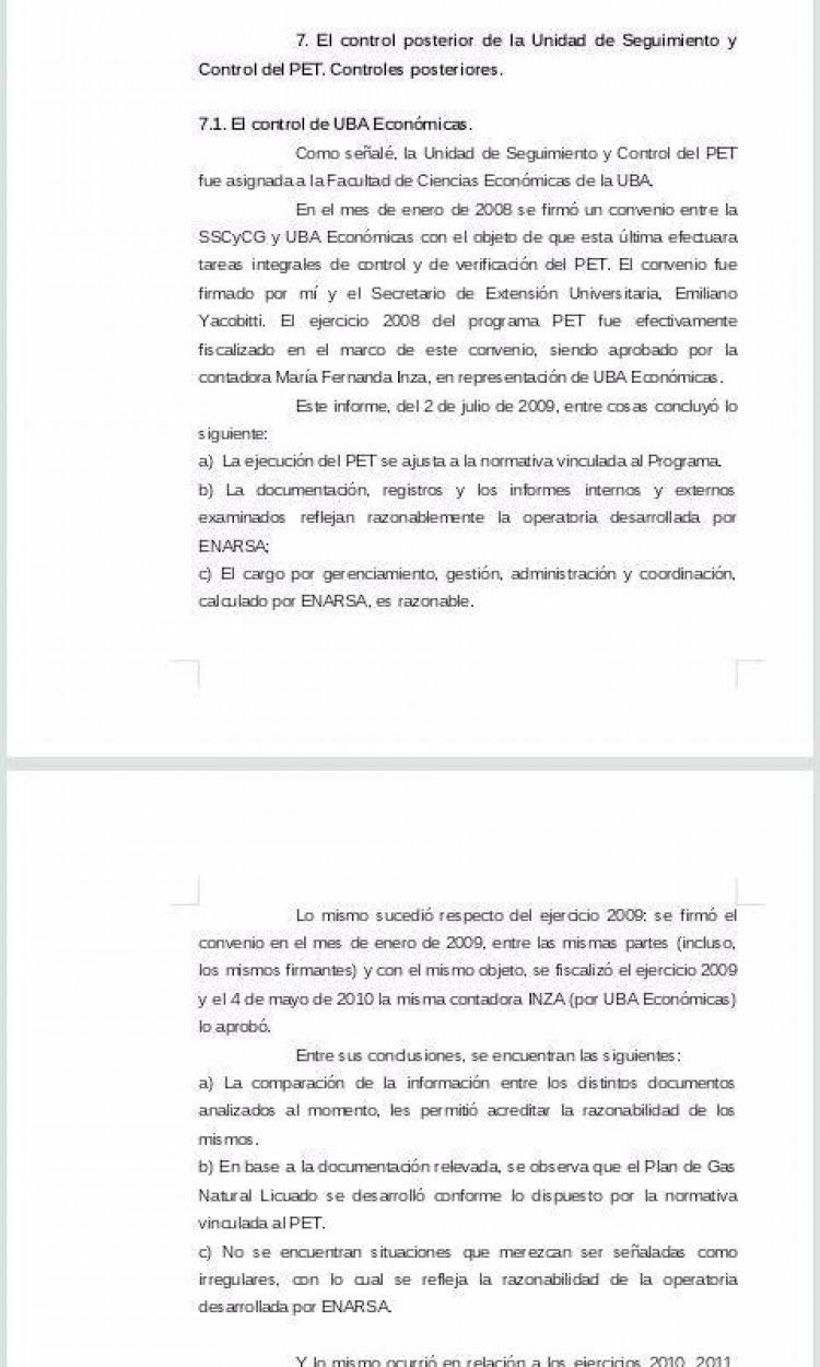 "No se encuentran situaciones que merezcan ser señaladas como irregulares, con lo cual se refleja la razonabilidad de la operatoria desarrollada por Enarsa", concluyó en aquel momento, como citó Letra P.