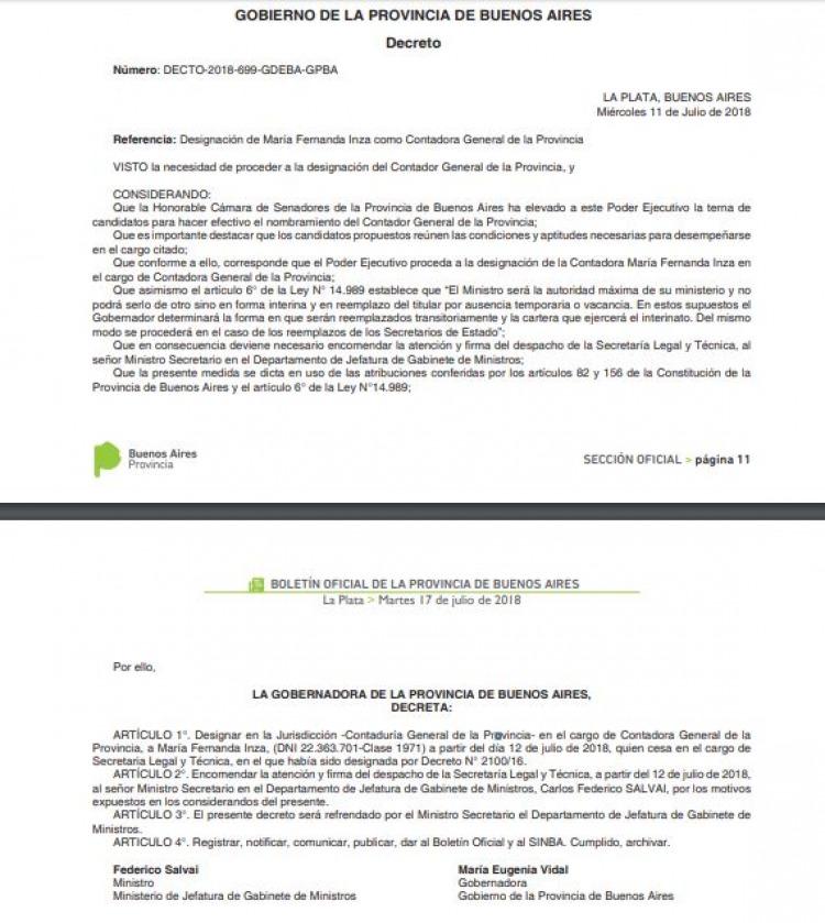 en ese limbo incomprensible -o no tanto- se encuentra María Fernanda Inza, quien de ser secretaria Legal y Técnica de María Eugenia Vidal pasó a ser nombrada hace cinco días y oficializada ayer como contadora General de la Provincia, premiada en pleno escándalo por los aportantes truchos, y hoy fue echada por su "nivel de involucramiento" por esa situación que generó 6 causas judiciales e implicaría, al menos, cientas de identidades robadas y unos $40 millones.