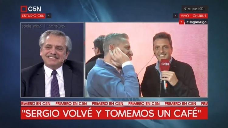 En medio de un superdomingo electoral con resultados de todos los colores, Alberto Fernández y Sergio Tomás Massa se cruzaron en el aire de un canal de noticias a la espera de lo que es el cierre de alianzas este miércoles 12. Con sonrisas complices y momentos de amplia expectativa todo terminó con una proposición: tomar un café.