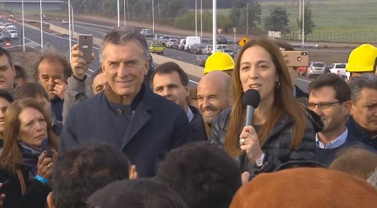 Mauricio Macri y María Eugenia Vidal pusieron en marcha la campaña de Juntos Somos el Cambio con la inauguración de un tramo de la ruta 7 en la localidad bonaerense de San Andrés de Giles. Allí resaltaron las obras que impulsaron en estos cuatro años y el Presidente volvió a tocar el pavimento para mostrar "lo real" como hizo con el Paseo del Bajo.