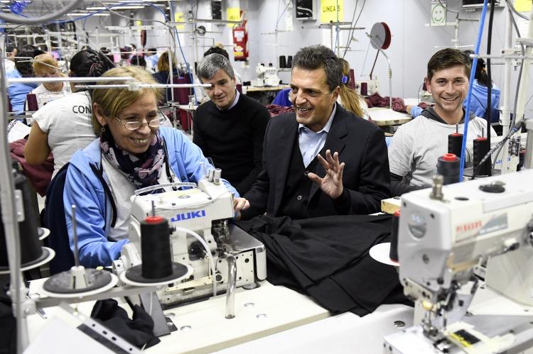 "El desafío es poner en marcha un programa productivo en Argentina, que requiere reducción de tasas de interés y de presión tributaria, porque este Gobierno elige privilegiar a la patria financiera y a los bancos, perjudicando el consumo y a los trabajadores, destruyendo la capacidad productiva", aseguró Massa durante la recorrida por la fábrica textil Baysur, fundada en 2005 y con 104 trabajadores.