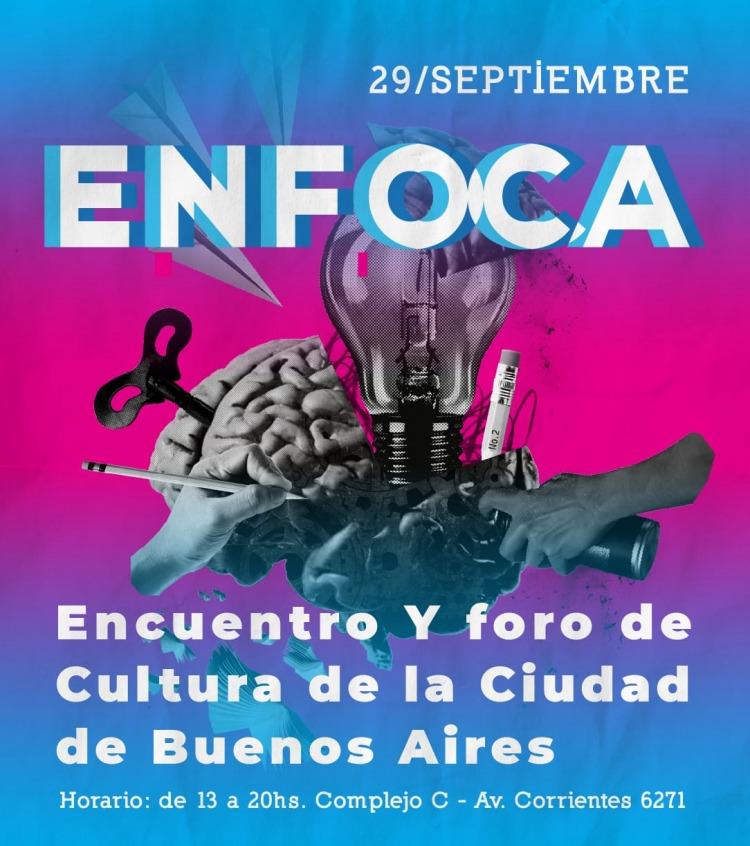 Más de 70 colectivos, organizaciones y espacios artísticos y culturales porteños convocan al primer Encuentro y Foro de Cultura de la Ciudad de Buenos Aires (EnFoCa), que se realizará el domingo 29 de septiembre a las 13 hs. en Complejo C Art Media, ubicado en Av. Corrientes 6271.