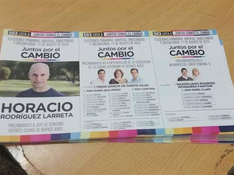 exhibiendo a los electores únicamente la boleta del candidato a Jefe de Gobierno, Horacio Rodríguez Larreta, y ocultando la boleta del candidato a Presidente, Mauricio Macri.