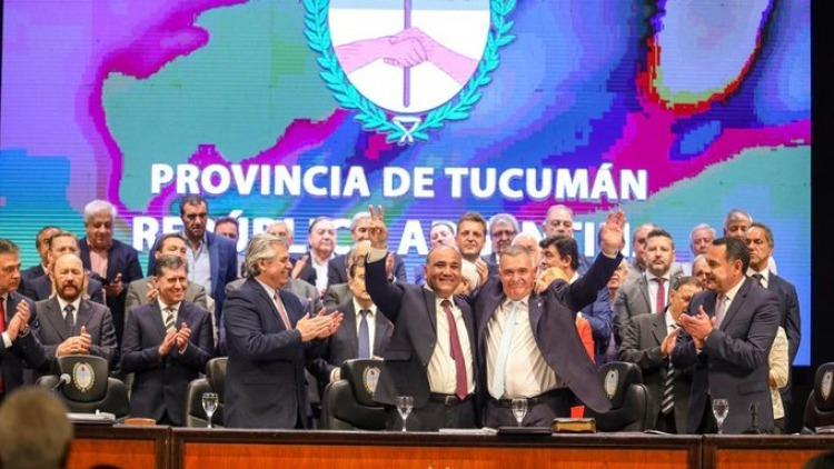 El nuevo presidente de todos los argentinos acompañó al gobernador de Tucumán en el comienzo formal de su segundo mandato al frente de la provincia del Norte. "A partir de ahora, caminamos en sintonía con la Nación junto al nuevo presidente de la República Argentina", señaló Manzur.