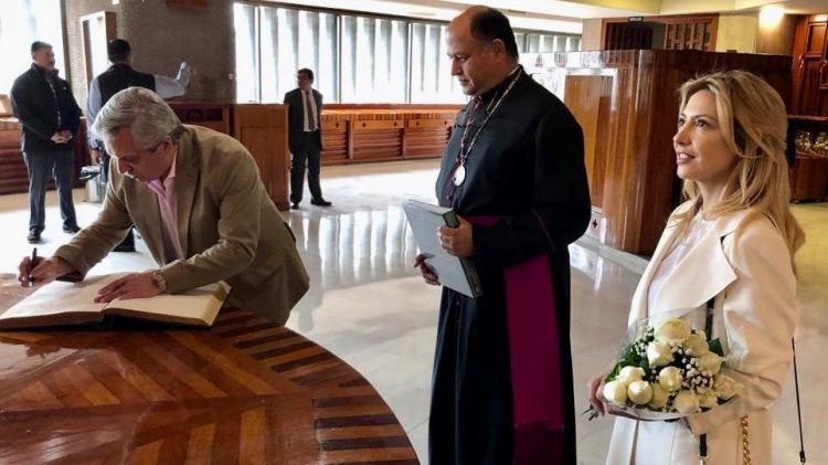 Junto a la comitiva, integrada por Felipe Solá y Santiago Cafiero, llevaron a cabo un recorrido de aproximadamente una hora por todo el recinto religioso.