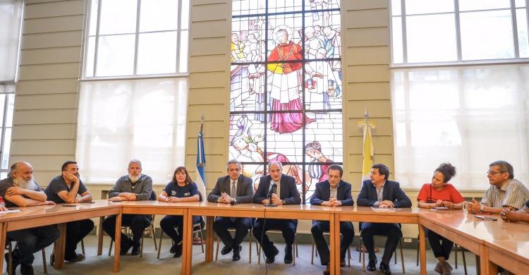 Alberto Fernández visitó este miércoles la sede de la Conferencia Episcopal Argentina (CEA), donde mantuvo un encuentro con integrantes de la Pastoral Social y referentes de los movimientos sociales, sectores con los que busca "trabajar durante su gobierno".