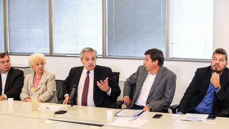 Participaron del encuentro la titular de Abuelas de Plaza de Mayo, Estela de Carlotto; el premio Nobel de la Paz, Adolfo Pérez Esquivel; el titular de Cáritas, Carlos Tissera, el conductor de TV Marcelo Tinelli, y la chef Narda Lepes.