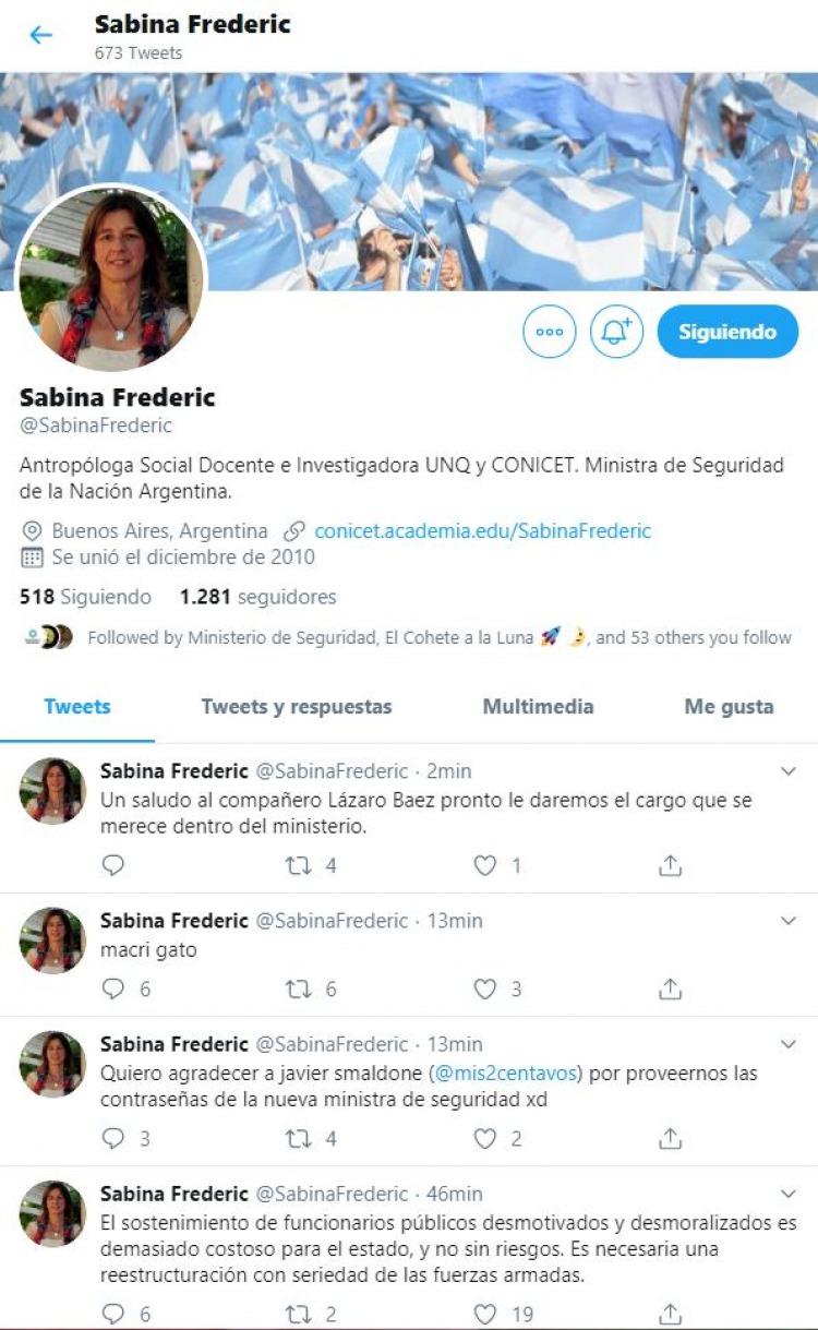 hackeraon la cuenta de Twitter de la nueva ministra de Seguridad, Sabina Frederic.