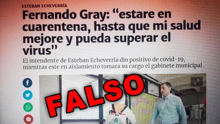 Vecinos y vecinas de Esteban Echeverría informo que es FALSO que contraje COVID-19. Es obra de algún malintencionado que deberá responder ante la Justicia. Como todos los días trabajaré con los equipos para enfrentar la pandemia. Agradezco los mensajes de apoyo y preocupación. pic.twitter.com/fvrf0eZTT4