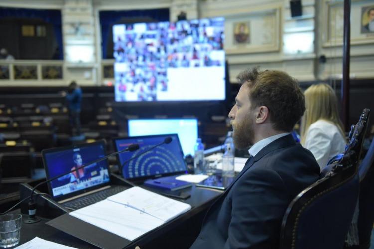 La Cámara de Diputados de la Provincia de Buenos Aires realizó una sesión ordinaria repitiendo la modalidad instrumentada desde el inicio de pandemia, con el presidente del cuerpo, Federico Otermín, junto a los presidentes de bloque y las autoridades de la Cámara en el recinto, y los demás diputados y diputadas participando de manera remota.