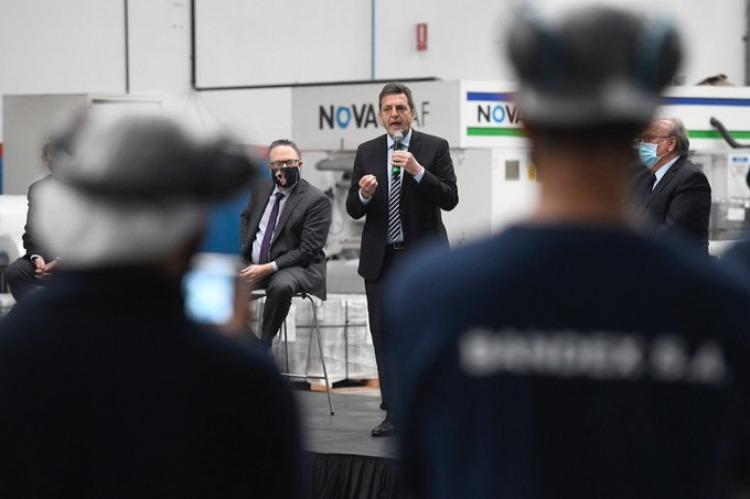Massa participó junto al Ministro de Desarrollo Productivo, Matías Kulfas; y el titular del (BICE), José De Mendiguren; del anuncio de las nuevas líneas de financiamiento que se realizó desde la empresa Bandex, en el partido bonaerense de Avellaneda.