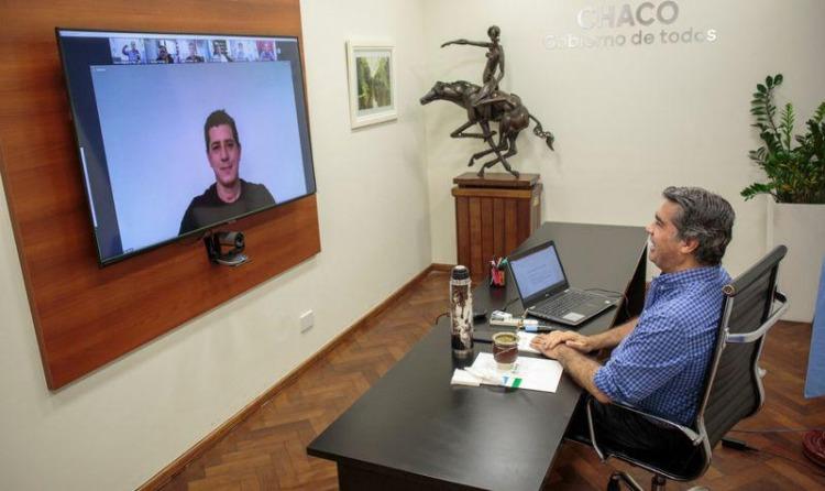 Jorge Capitanich, una videoconferencia con 69 intendentes e intendentas de esa provincia con el objetivo de avanzar en la implementación del programa "Municipios de Pie", una iniciativa que tiene como objetivo atender de forma directa y permanente a los gobiernos locales de todo el país.
