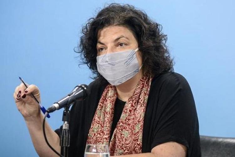 La ministra de Salud, Carla Vizzotti, hizo un análisis de la tendencia epidemiológica del coronavirus en nuestro país ante un grupo de periodistas de medios gráficos y digitales nacionales, durante un encuentro realizado en la sede de la cartera sanitaria donde también informó los avances del Plan Estratégico de Vacunación COVID-19 y los desafíos de la prevención de enfermedades respiratorias en el contexto de la pandemia.