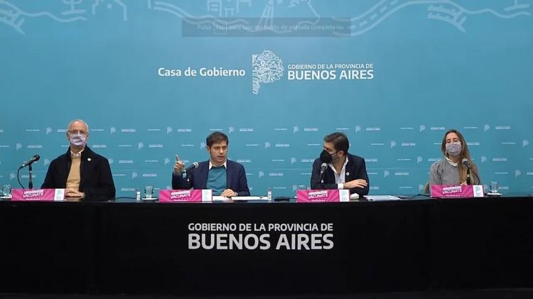 El gobernador bonaerense Axel Kicillof anunció esta tarde que las clases presenciales volverán en la provincia a partir del miércoles, respetando los protocolos pautados, al brindar una conferencia de prensa en la que detalla cómo siguen las medidas contra el coronavirus.