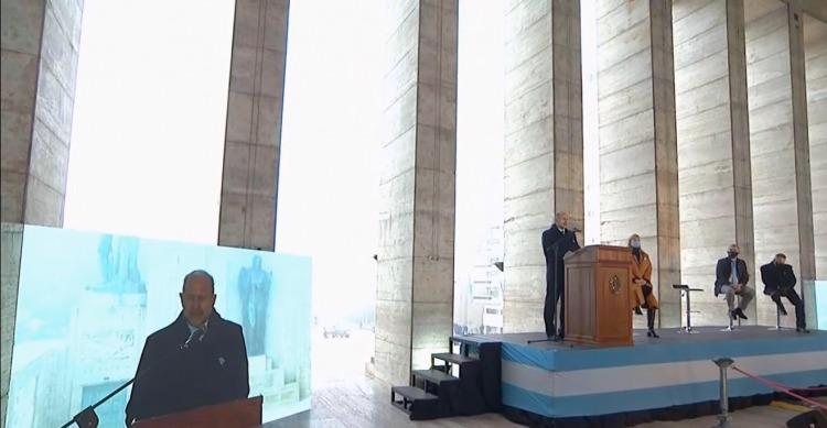 El Jefe de Estado, además, se conectó por videoconferencia con el Monumento a la Bandera de Rosario, donde estuvieron presentes el gobernador de Santa Fe,