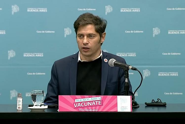 "No solo los que perdieron el turno y miembros de los grupos de vacuna libre, sino todos los mayores de 40 años", aseguró el mandatario provincial, con lo que a partir de este viernes podrán vacunarse sin turno con domicilio en PBA los mayores de 40.