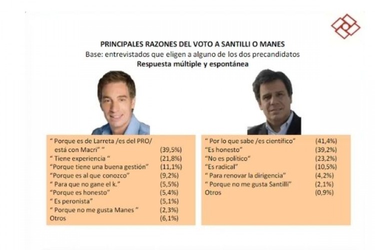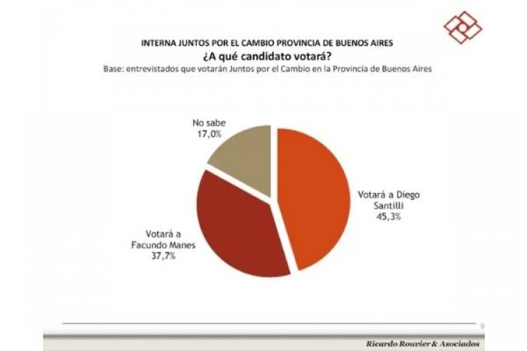 Al ahondar en la interna que presenta el frente Juntos en las próximas PASO, Diego Santilli con el 45,3 por ciento, sobre el radical Facundo Manes, con 37,3.