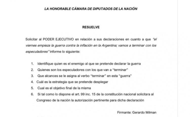 Milman pedía que se “identifique quién es el enemigo al que se pretende declarar la guerra”.