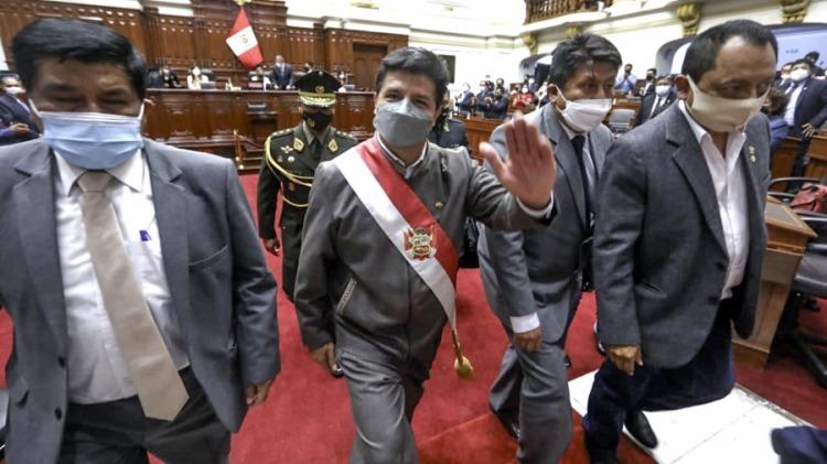 Castillo acudió al Congreso a presentar sus descargos -aunque no estaba obligado por ley- junto a su abogado, José Félix Palomino. Ésta fue la segunda moción de vacancia contra Castillo, que asumió la presidencia en julio de 2021 tras ganar un apretado balotaje a la derechista Keiko Fujimori. En diciembre, el Congreso desestimó una medida similar.