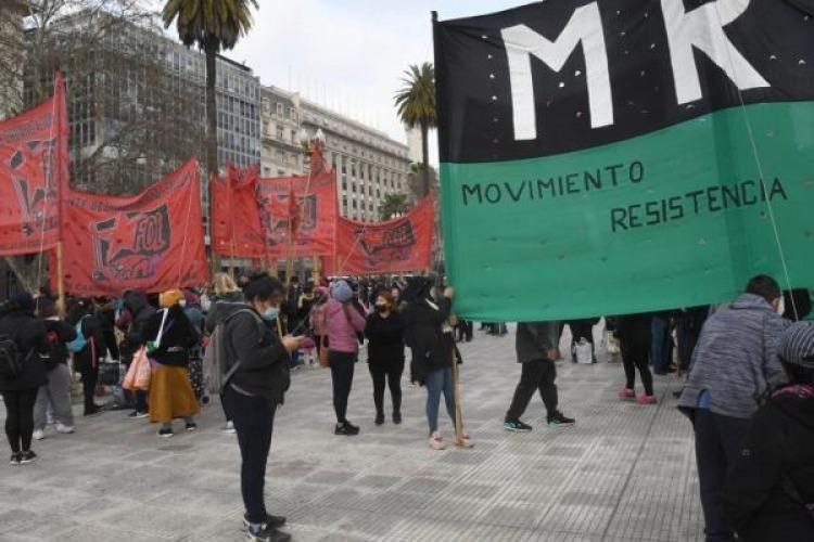 La protesta es organizada por el Frente de Organizaciones en Lucha (FOL), facciones del MTD Aníbal Verón y del Frente Popular Darío Santillán, MRP Resistencia Popular y MTR por la Democracia Directa.