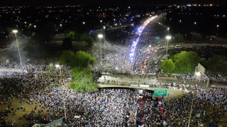 Para llegar a destino, atravesaron una marea humana integrada por decenas de miles de personas que se apostaba a los costados de la autopista aguardando el paso de los campeones rumbo al predio donde pasaron la noche.
